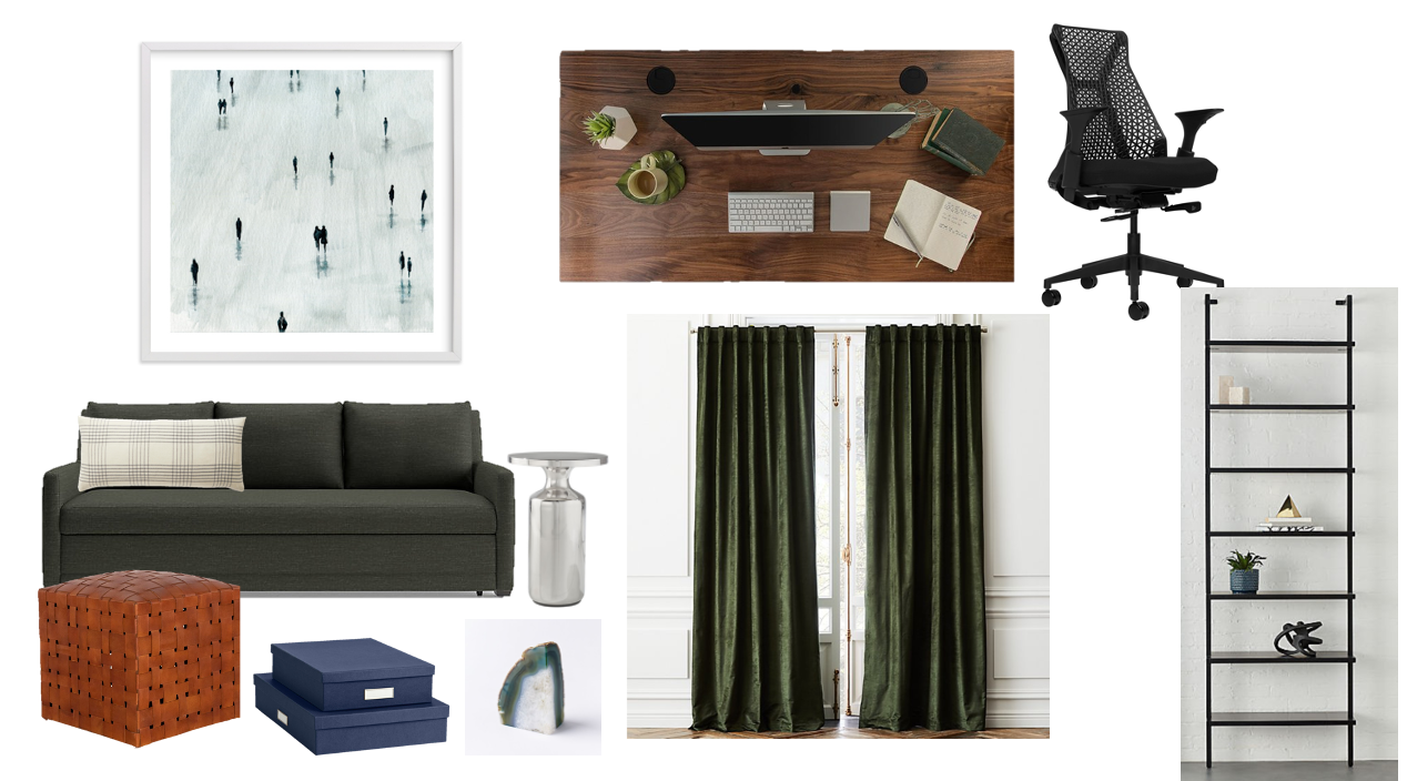 The office looked like this for months while I looked EVERYWHERE for the sleeper sofa that I knew must be out there, the sofa that would physically fit in the room (and through the door) and that would meet my very specific style needs. Turns out that sofa didn’t exist <sigh>, at least not without a custom order, which was definitely NOT in the budget.