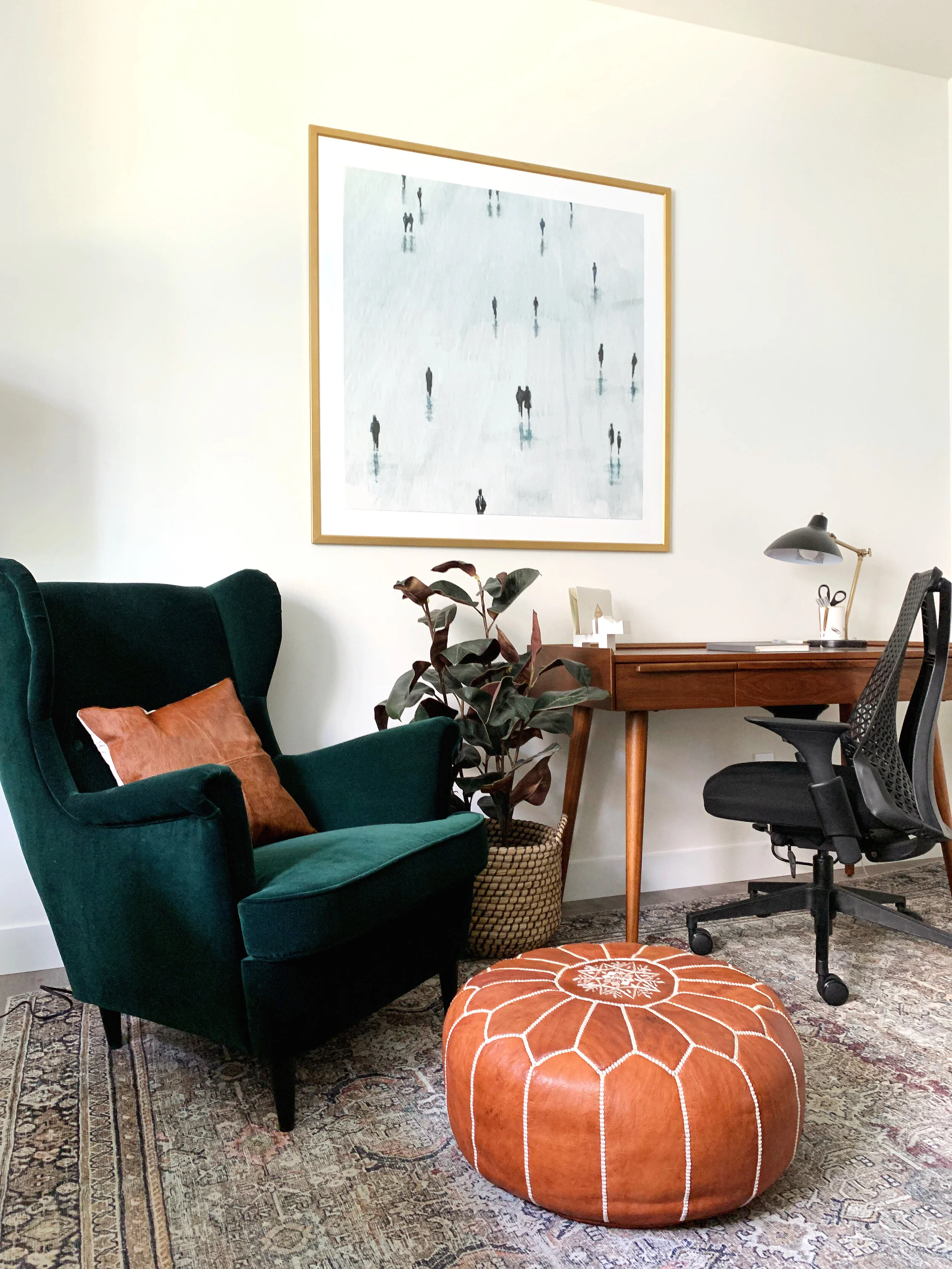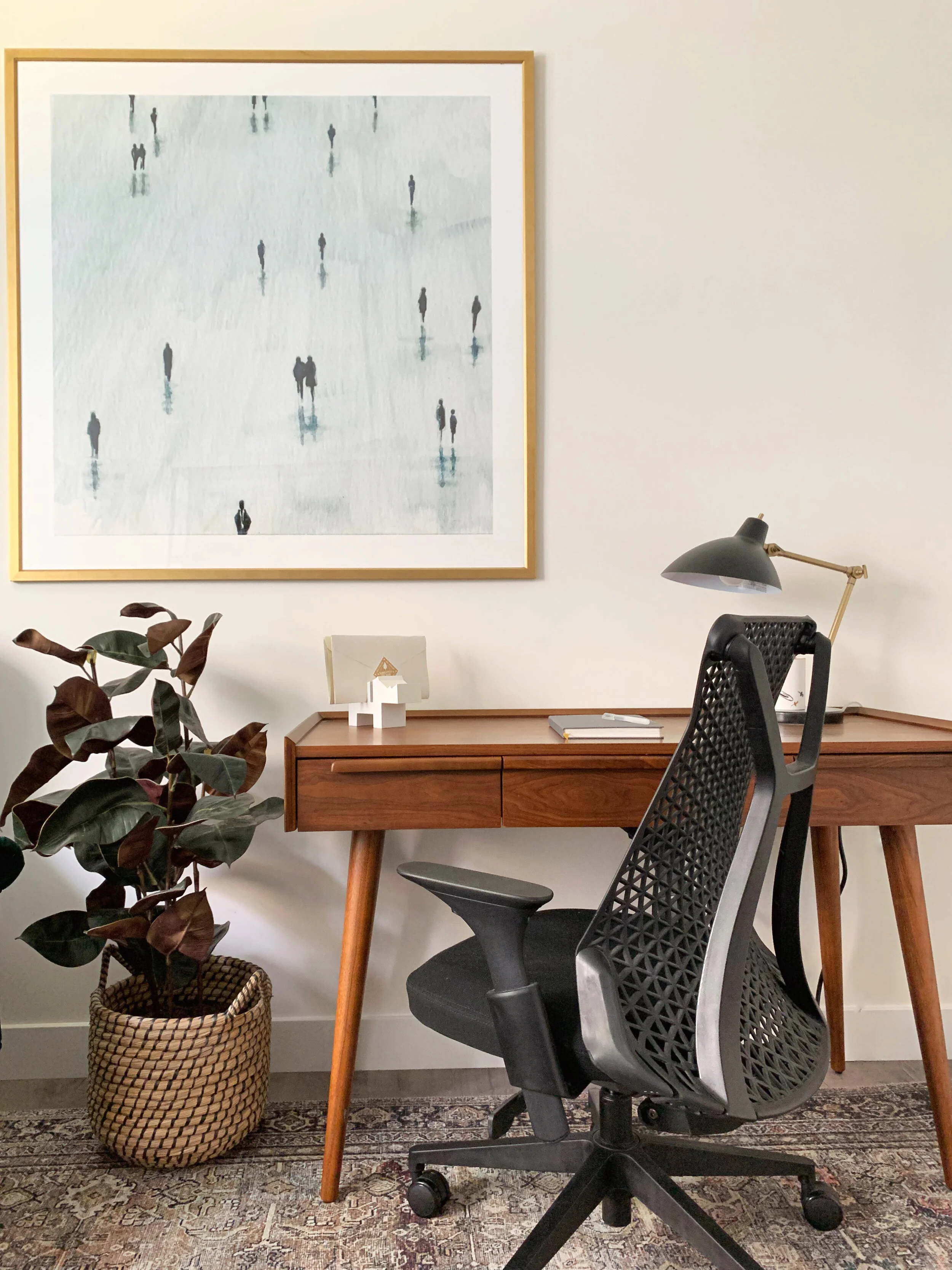 Quick side note: Before the desk decision, I was so annoyed by the placement of our painting. It was wayyy to high (okay, okay, it was at most five inches too high, but that felt like a lot) and it drove me bonkers every time I came into the room. But then…